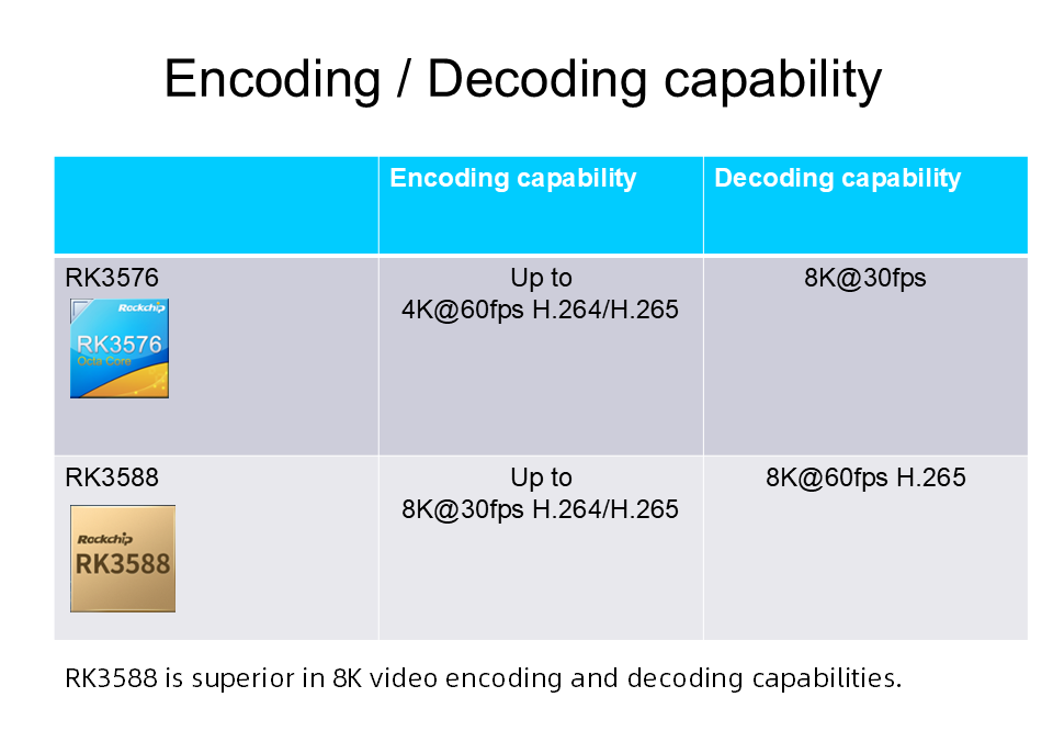 RK3588 is beter in 8K -video -codering en decoderingsmogelijkheden.