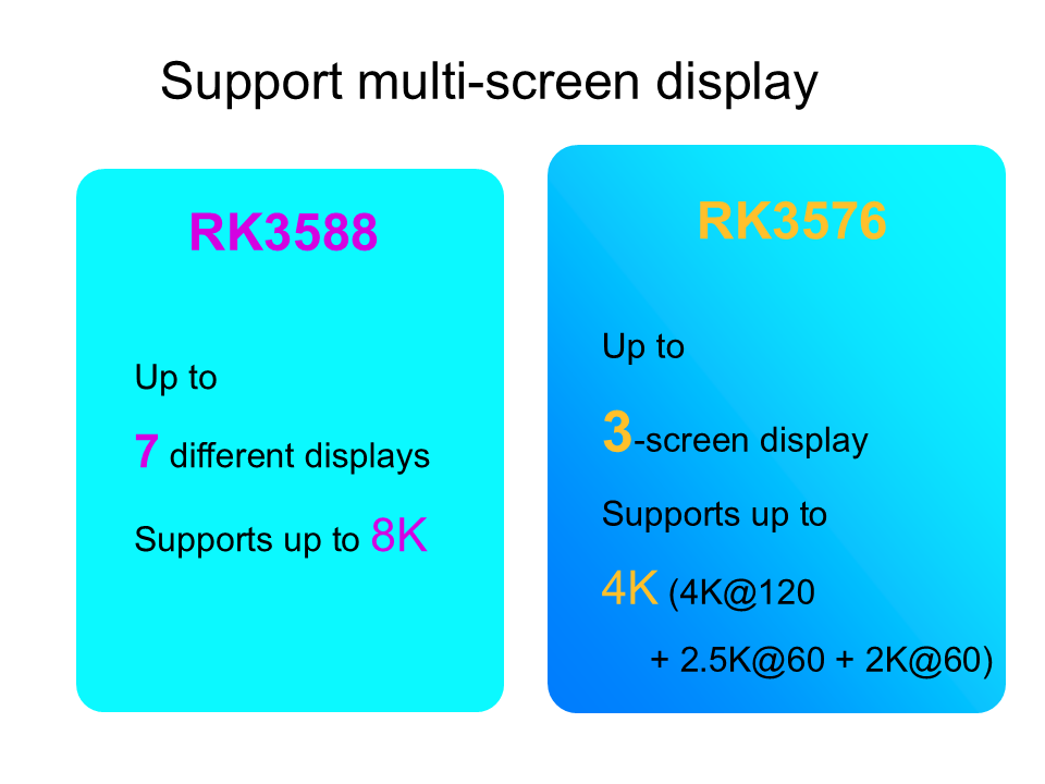 RK3588 ondersteunt tot 8k@60fps H.265, en RK3576 ondersteunt maximaal 8k@30 fps.